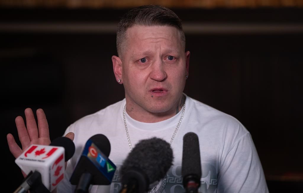 Wesley Grist speaks about his son Kache Grist who died after an attack by two large dogs in Edmonton on Sunday April 7, 2024. THE CANADIAN PRESS/Jason Franson.