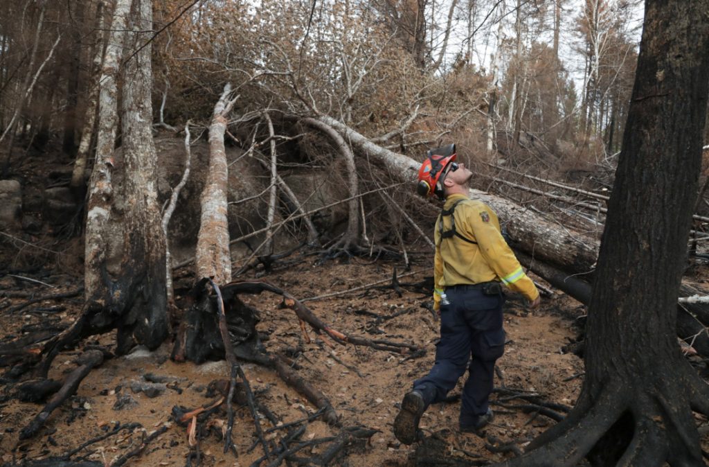 Despite the cooler weather and some rain in the last several weeks, firefighters are still dousing hot spots that could spread if not treated properly, an update from the Department of Natural Resources reads.