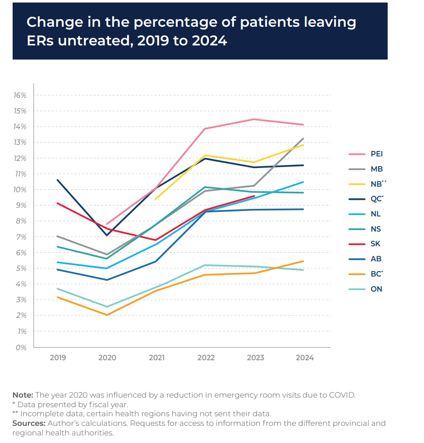 The report from MEI notes that half of the patients who left emergency departments in Nova Scotia were classified as having cases that are non-life-threatening but still required urgent medical care. The report suggests that those who still need care but are forced to leave “often end up suffering from