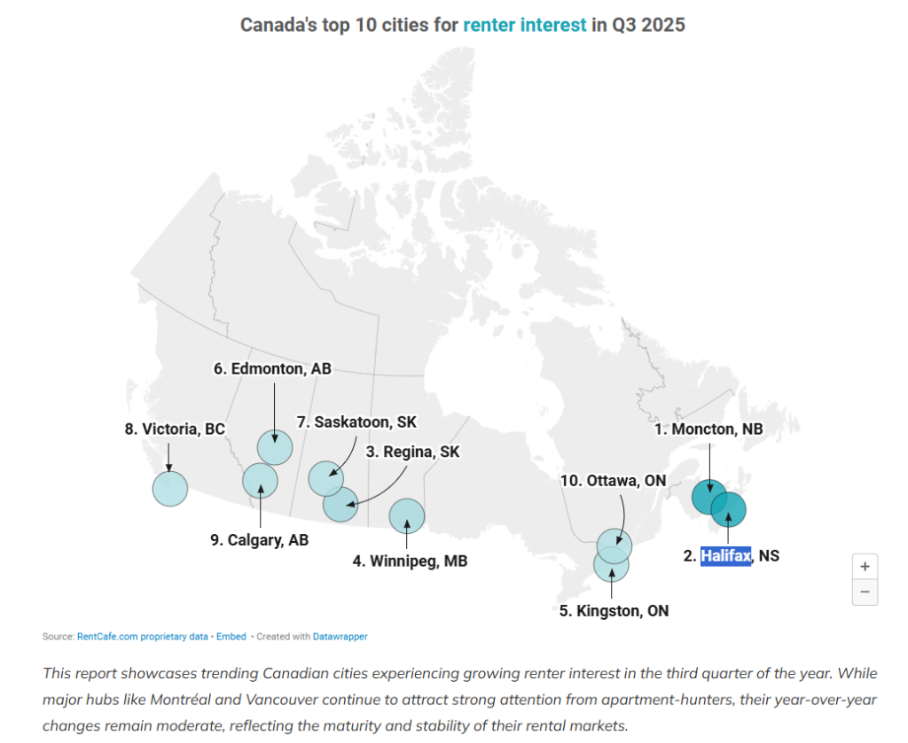 That’s according to new data from RentCafe.com, where Halifax places second for most sought-after rental markets.